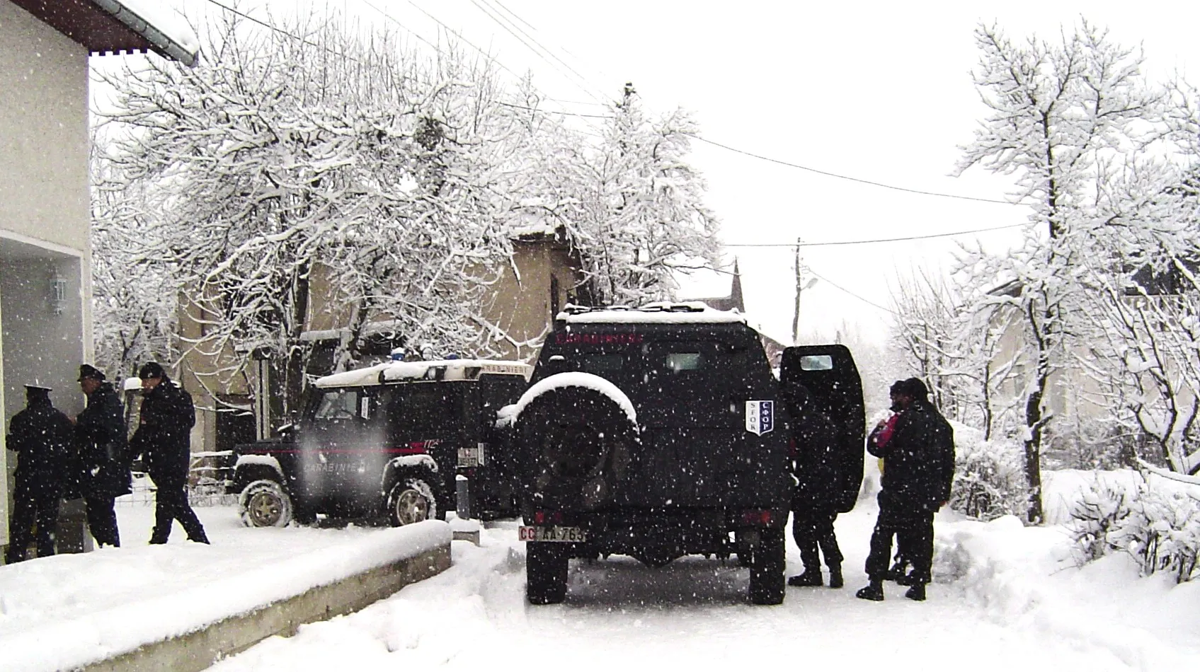 Véhicules de la SFOR dans de fortes chutes de neige.