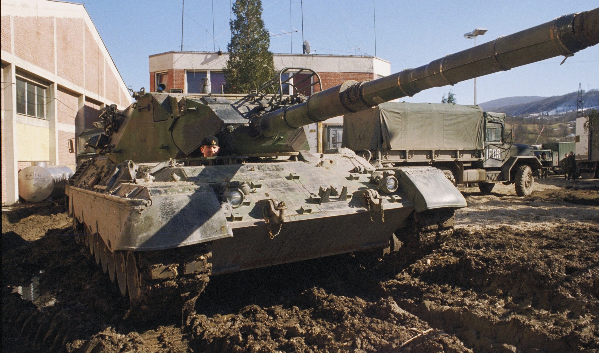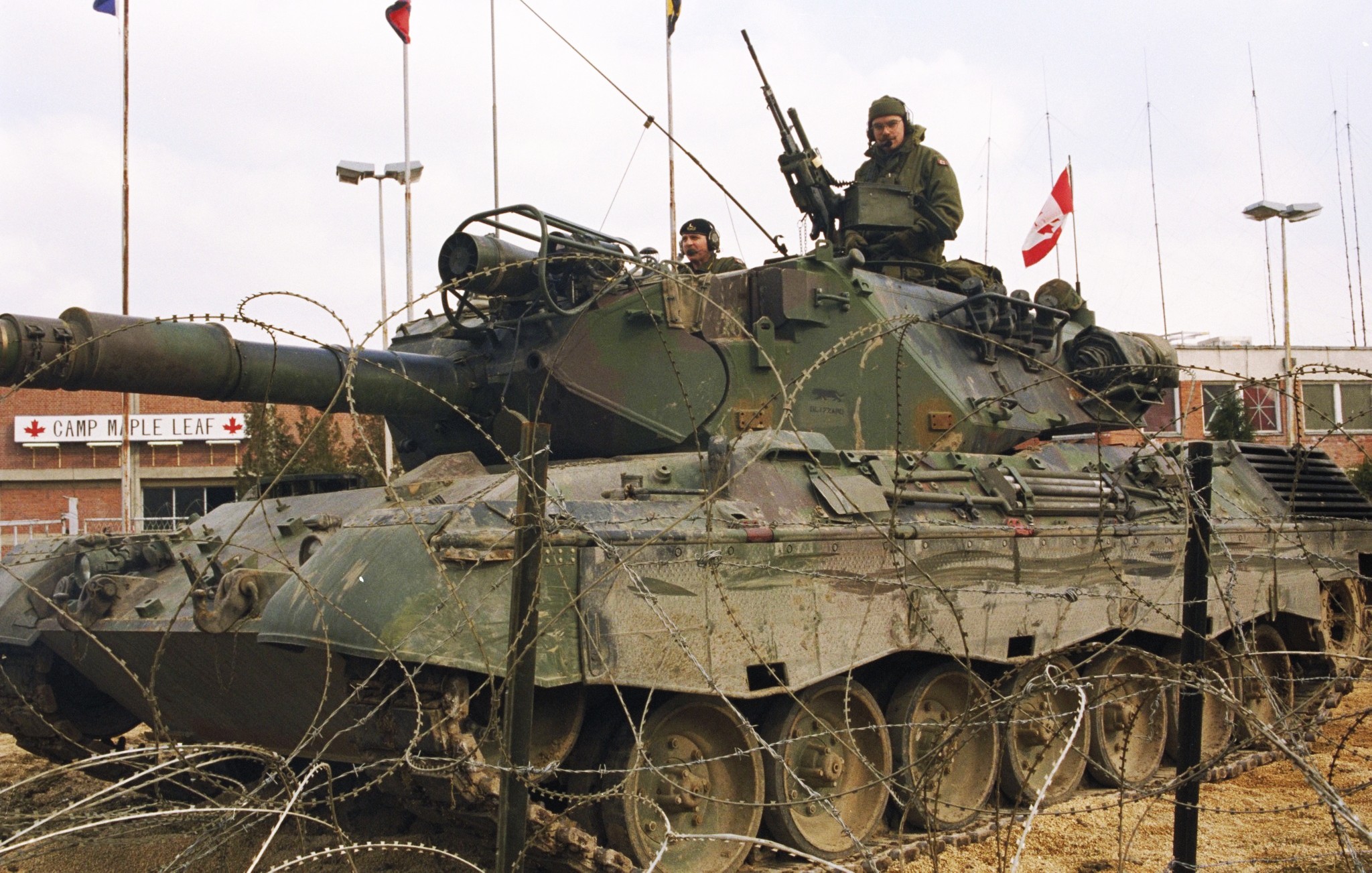Camp Maple Leaf, Zagon Bosnia, 1996. Leopard C1's were deployed as part of the NATO led Implementation force (IFOR). The main purpose of the deployment was for specialized engineering (mine roller and mine plough) tasks related to mine clearance following the Bosnian War. Both Leopard"s were fitted with attachments to mount the MEXAS (Modular Expandable Armour System) for the deployment.